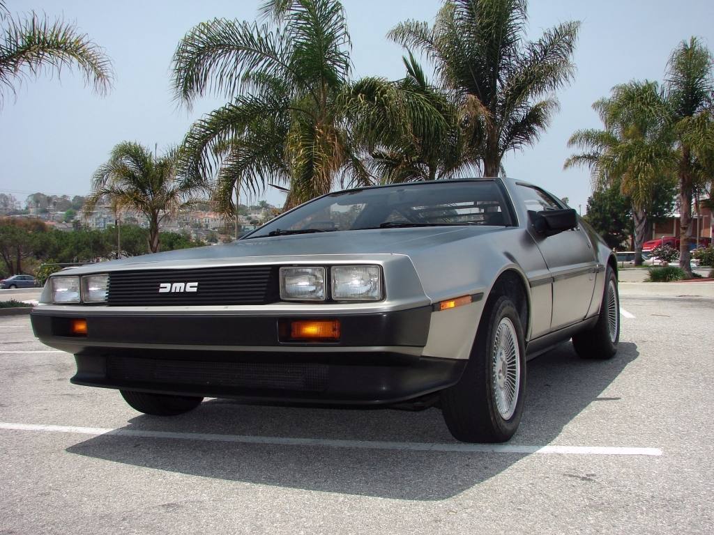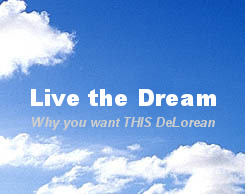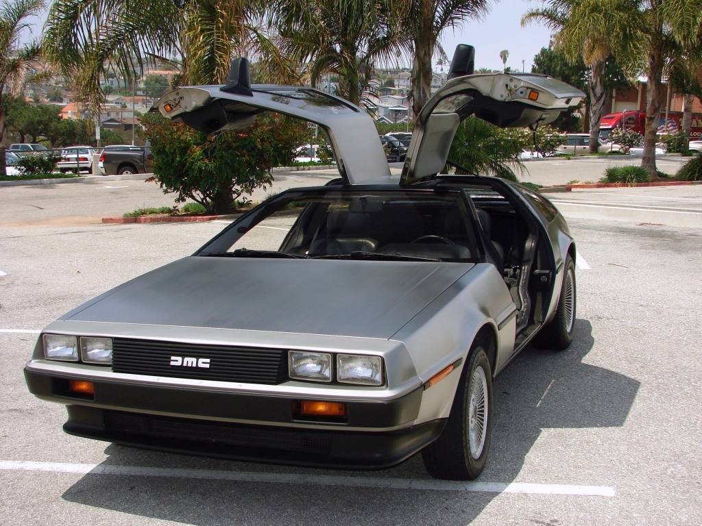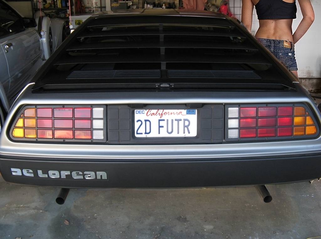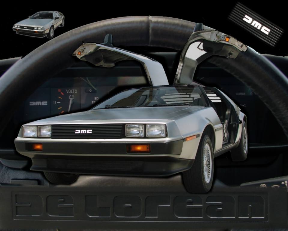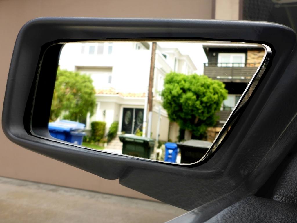 | Narrow view from the standard mirror. | | Wider view from THIS Delorean's mirrors (note the DMC logo). | | Custom DMC valve stem covers! |