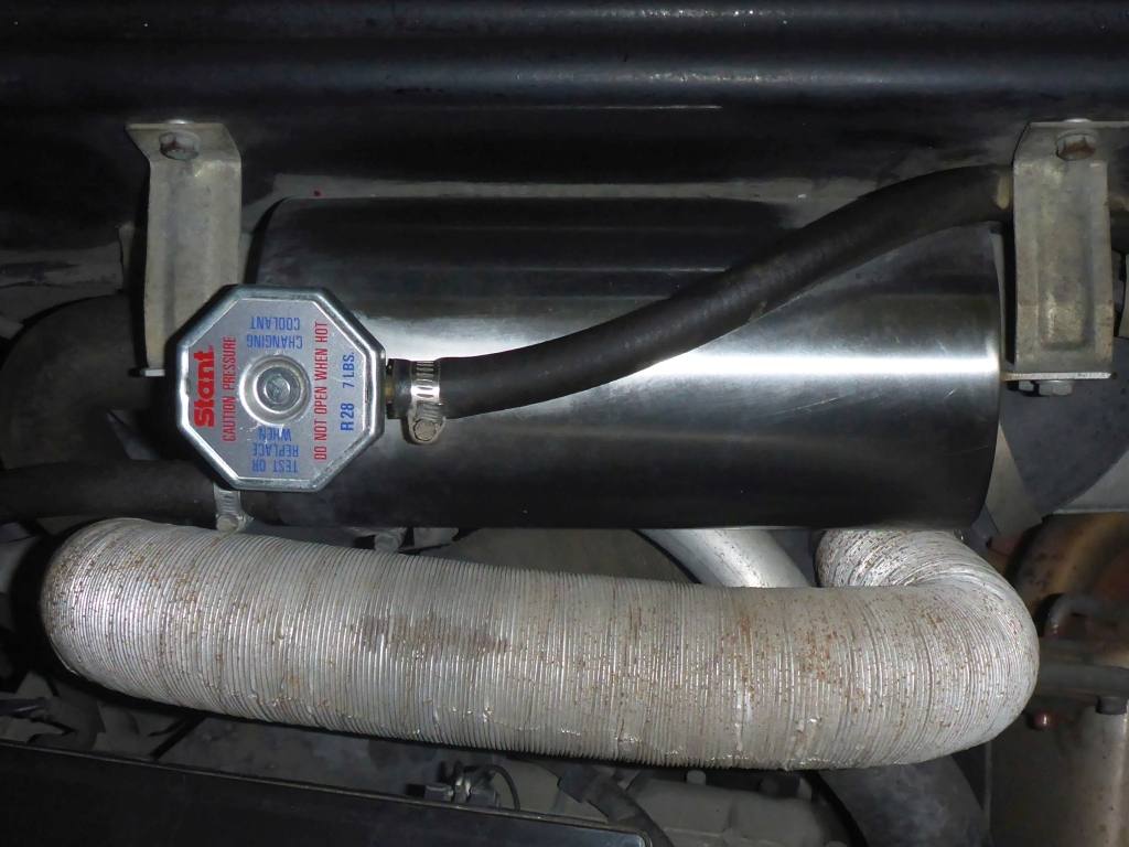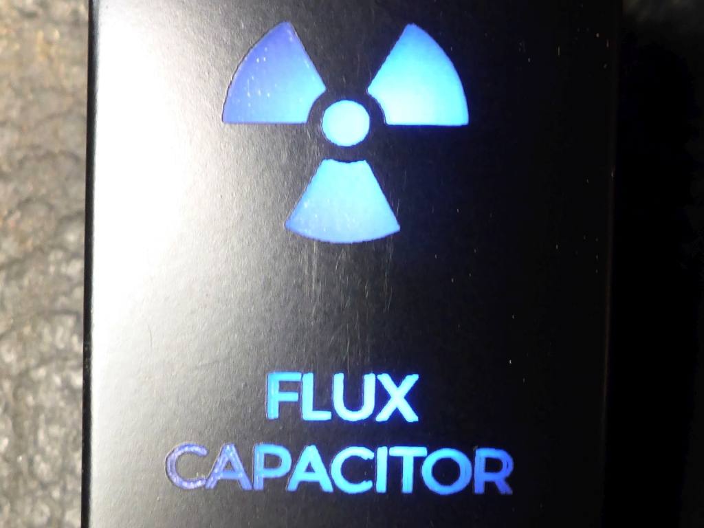 | THIS DeLorean has it's own Flux Capacitor switch! (OK it operates the cooling fans, but still...) | | And yes, it lights up! | | THIS DeLorean has a stainless steel expansion tank instead of the plastic OEM version. |